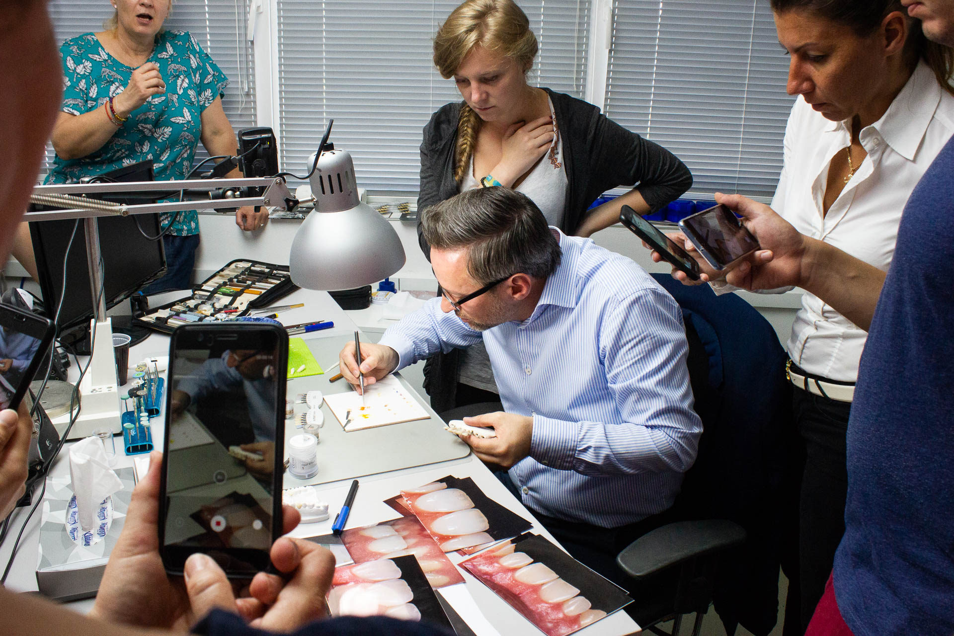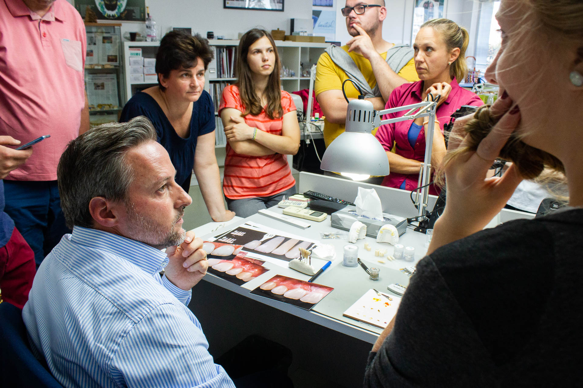 Dieter Grübel ICDE fogtechnikai demonstrátor látogatott el hozzánk, hogy megtartsa három napos haladó esztétikai kurzusát, melyen laborunk tagjainak is szerencséje volt részt venni. A tanfolyam témája a tökéletes IPS e.max Press MT Anterior korona és héj, valamint az IPS ZirCAD PRIME Posterior készítése volt.
