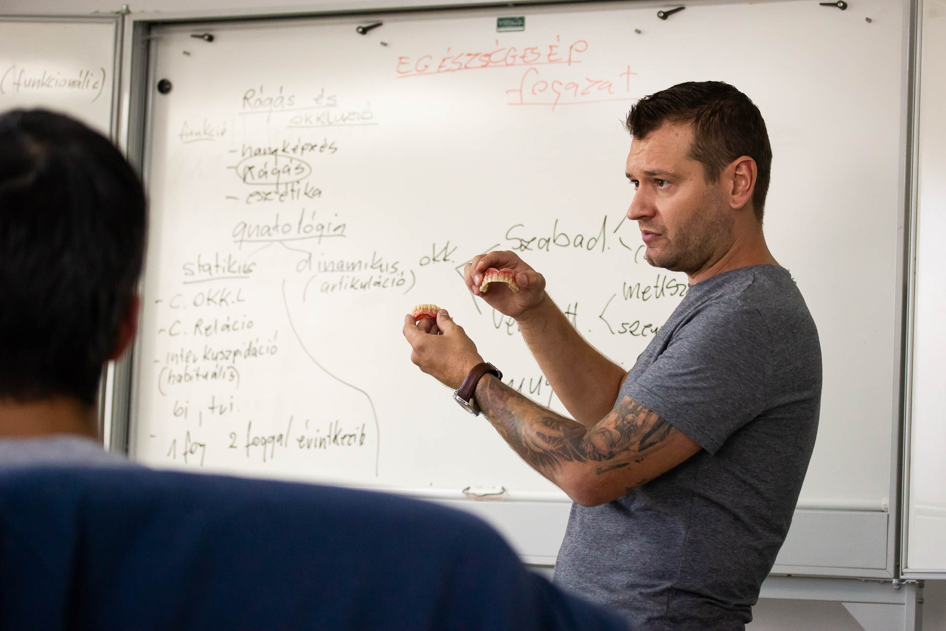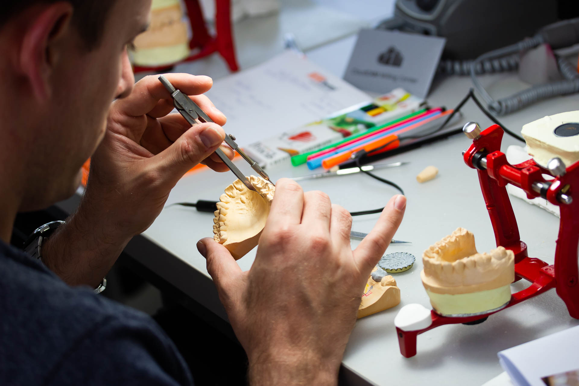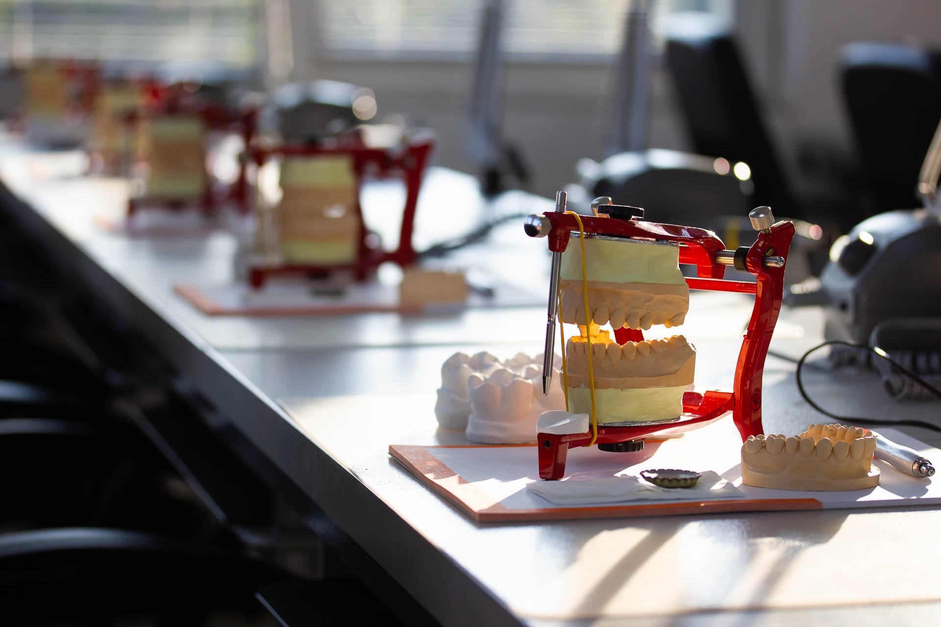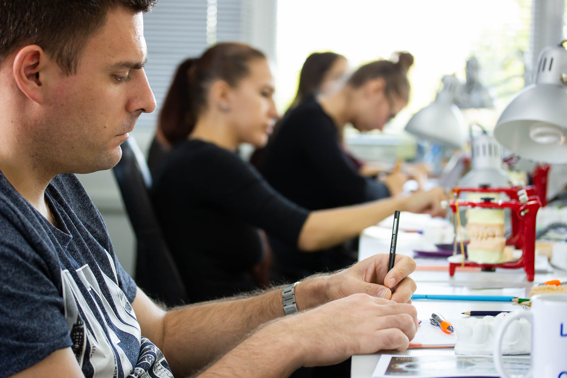 okklúziós viszonyainak világába. A két napos kurzus során a tanulók megismerkedtek a viaszmintázástól és opákerezéstől kezdve, a rétegtechnikán át a fényégetésig mindennel, ami a biztos alapok elsajátításához kell.